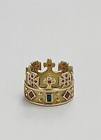 Feuer wie Gold 3. Dezember bis 8. Januar 2005 Dorothea Baumer, VOGUE, November 1996 Träume aus Gold Geschichten und Romane beflügeln sie ebenso wie romantische Episoden und Musik. Gabriele Dziubas Entwürfe - rubinbesetzte Krönchenringe, Laternen, goldene Eimerchen und Spiegelchen zum Umhängen - sprechen von nichts anderem. Sie liebt Weißgold pur, das wie Eisen aussieht, und sie hat ein entschiedenes Verhältnis zum Ornament: "Je reicher, desto besser." Über die Kunst ist die einstige Punkerin zu ihrem Handwerk gekommen. Die Begegnung mit Andy Warhols Werken war ein erstes großes Erlebnis. Der Märchenton seiner goldenen Schuhzeichnungen verzauberte sie. In Francisco de Goyas dunkler Grafik fand eine andere Seite ihrer Seele Nahrung. Später hat sie auch Aktuelles in ihr privates Universum aufgenommen. Mit Bildern und Skulpturen von Günther Förg, Hans-Jörg Mayer und Martin Kippenberger umgibt sie sich in ihrer Wohnung. Für Martin Kippenberger hat die Goldschmiedin die Verlobungsringe gefertigt und auch ein neun Zentimeter großes St.-Martin-Schwert. Überhaupt sind Künstler, Kunstsammler und Galeristen Gabrieles Dziubas wichtigste Auftraggeber. In Avantgarde-Galerien hat sie üppigste Schmuckinszenierungen verwirklicht, in Wien, Chicago und New York waren ihre Traumgebilde zu sehen - spielerisch, feminin, geheimnisvoll und immer perfekt.