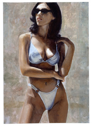 1000 Frauen. Der schwere Weg zur Malerei. 28. April - 27. Mai 2006 Es kann nicht als besonders originell gelten, schöne Frauen, bekleidet oder unbekleidet, en detail oder im Ganzen darzustellen, da Künstler dies seit der Steinzeit tun. Wenn man es dennoch tut, und zwar ohne erkennbare stilistische Innovationsgeste, muss dies als Statement gelten: endlich mit dem Innovationsgekaspere aufzuhören und zur künstlerischen Substanz zurückzukehren. Vom 28. April bis 27. Mai 2006 zeigt die Galerie Heufelder & Koos die erste Ausstellung von Dieter Weidmann (*1955 in Riedlingen bei Donauwörth), der an der Kunstakademie in München studierte und danach in Kunstgeschichte promovierte. Seit seiner Kindheit ist Weidmann von gegenständlicher Malerei fasziniert, für die er bereits früh einige Begabung zeigte, doch geriet er in den sattsam bekannten Zeitgeist, in dem diese Malerei wenig gefragt war. So malte er zu seinem eigenen Vergnügen und beobachtete die Kunstwelt aus gepflegter Entfernung. Er wartete einfach eine halbe Ewigkeit ab, bis wieder gut gemalte gegenständliche Bilder gefragt sein würden. Zwischenzeitlich gab er die Malerei ganz auf, weil ihm der Weg zu steinig und der Lohn zu dürftig schienen. Inzwischen hatte er sich als Buch- und Zeitschriftenautor einigermaßen etabliert. Bei der Arbeit an einem Ratgeber für Fotosammler im Zusammenhang mit dem inzwischen schon wieder etwas abgeflauten Fotoboom wurde ihm klar, wie teuer ein einziger Farbabzug ist (reine Laborkosten über 1.000 €) und stelle spontan fest: für dieses Geld kann man es auch malen! Obwohl die Bilder von Dieter Weidmann ihre Herkunft von der Fotografie nicht verleugnen, geht es ihnen doch ganz offensichtlich um das, was Malerei und nur Malerei an Intensität, Transparenz, struktureller Dichte und Komplexität zu bieten hat. Einen größeren Teil der Vorlagen entnahm er dem Oeuvre der bedeutenden Modefotografin Louise Dahle-Wolfe, deren sachlich-lyrischer Stil ohne übertriebene Stilisierung aus den 40er und 50er Jahren (überwiegend für Harpers Bazaar) eine geheimnisvolle Magie entfaltet. Die Umsetzung in Malerei erfolgt in einer Art Alchemie mit selbstgemixten Farben nach ständig wechselnden Rezepturen und Verfahrensweisen. Im Gegensatz zu der gegenwärtig vielbeachteten Leipziger Schule erlaubt sich der Maler keine abstrakten Effekte oder stilistischen Mischungen, sondern bemüht sich um ein sehr einfaches, direktes Raffinement des effektlos wirkenden Stils und verzichtet auf vordergründigen Tiefgang und wohlfeilen Symbolismus. Zweck dieser Bilder ist es, ihren Besitzer über viele Jahre immer wieder aufs Neue zu erfreuen und zu beglücken. Die Bilder sind so einfach, dass sie sich unmittelbar erschließen, aber komplex und vielschichtig genug, dass sie ein letztlich nicht auslotbares Geheimnis in sich bergen. |
